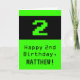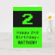 A frente deste design de cartão de saudação de aniversário nerdy e geek apresenta um grande estilo de jogos de vídeo verde "2". Também apresenta a mensagem de saudação de aniversário "segundo aniversário Feliz", e um nome personalizável. O dentro apresenta uma mensagem de saudação de aniversário personalizada, ou talvez possa ser apagado e deixado o vazio se uma mensagem for escrita manualmente. Um cartão de aniversário personalizado e geek como este pode ser uma maneira divertida de enviar desejos de aniversário a alguém que comemora seu segundo aniversário. [~Z0000430]
