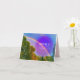 SEGURAR EM <3 AMOR VEM POR MEIO DA afirmação sobre a minha foto do arco-íris entre árvores em um cartão de saudação pequeno colorido e dentro de vazio com envelope