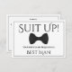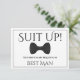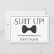 Use esta "melhor carta de proposta de homem" para pedir ao seu amigo especial, irmão ou outro membro da família para ser o melhor homem no seu casamento. Ele apresenta uma imagem de uma gravata de arco preto sobre um fundo prateado e diz: "Encaixe!" Seus serviços são solicitados como o melhor homem" Há um espaço para inserir uma nota especial perguntando "você será meu melhor homem?" assim como os nomes dos casais de casamento e a data do casamento. Todos os campos são totalmente personalizáveis.