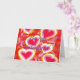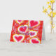 Corações coloridos com texto.