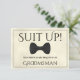 Este Cartão de Proposta de Padrinho de casamento divertido é uma maneira maravilhosa de pedir aos seus amigos especiais ou familiares para fazerem parte do seu partido noivo. Apresenta um design bonito com marfim marmoreado ou fundo creme, uma gravata arco preta e o texto "Encaixe! Seus serviços são solicitados como Padrinho de casamento." Excelente maneira de pedir a ele que faça parte do seu dia especial.