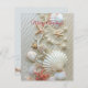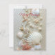 Bonito cartão de Natal e Saudações com conchas, pérolas brancas, coral rosa e estrelas-do-mar para todas as pessoas sortudas que vivem onde está ensolarado e quente.