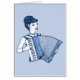 Uma imagem retrô de uma senhora bem vestida tocando um acordeão.