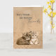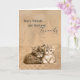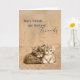 Cartão de condolências para alguém que recentemente perdeu um gato ou gatinho. A frente do cartão é monocromática em tons de bege com dois gatinhos fofos na frente, com a frase "Amigos peludos são os melhores amigos".