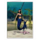 Renderização digital em 3D de uma sereia fofa sobre fundo oceânico de fantasia azul
