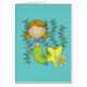 Uma sereia sorridente e uma natação amarela de estrelas-do-mar entre as algas, uma design que é fofa e colorida para meninas que amam o oceano e as sereias! T-shirts de sereia, fatos-chave, bíblias, cobertores, panos de arroto, cartões, autocolantes, bolsas, canecas, correntes-chave, travesseiros, relógios de parede e muitas outras artes de sereia!