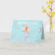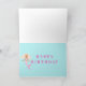 Uma sereia cor-de-rosa giro em fundo azul com algas marinhas e estrelas-do-mar é a base deste cartão de saudação personalizado para crianças. O nome é facilmente alterado para o seu próprio cartão de aniversário personalizado.