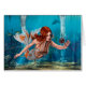 Sereia bonita segurando uma flor de lírio-marinho sobre fundo oceânico de fantasia azul