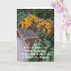 Cartão de saudação ao estilo do vazio que apresenta uma imagem fotográfica das flores amarelas da planta-leopardo crescendo ao lado de uma bancada de jardim juntamente com as palavras inspiradoras da oração da serenidade. Um design floral adorável! Selecione o estilo do cartão.