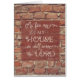Um fundo de tijolos rústico rodeia a tipografia versa das escrituras de Joshua 24:15, "Quanto a mim e à minha casa, nós serviremos o Senhor" Desenhado por Simplesmente Escritura por Robin.