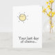 NewParkLane - Adicione boas vibrações com este lindo cartão de melhoras para alguém que está lutando contra o câncer e precisa de um pouco de sol. O cartão tem um pequeno desenho animado de um sol e o texto: 'Seu último dia de quimioterapia!' em uma tipografia divertida. A mensagem interna diz 'Continue firme', mas pode ser facilmente alterada para qualquer outra mensagem para um design personalizado.