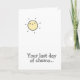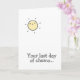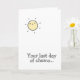 NewParkLane - Adicione boas vibrações com este lindo cartão de melhoras para alguém que está lutando contra o câncer e precisa de um pouco de sol. O cartão tem um pequeno desenho animado do sol e o texto: 'Seu último dia de quimioterapia!' em uma tipografia divertida. A mensagem interna diz 'Aguente firme', mas pode ser facilmente alterada para qualquer outra mensagem para um design personalizado.