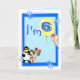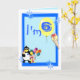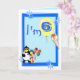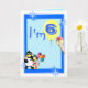 Cartão de 6 com palhaço engraçado, pinguim, sorvete e balões, em fundo azul. Personalize facilmente este design, adicionando ou alterando o texto.