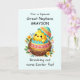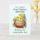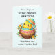 Celebre a Páscoa com o seu sobrinho excelente, fazer este cartão ainda mais especial com o seu nome na frente! Apresentando um adorável pintinho eclodindo de sua casca, cercado por flores coloridas de primavera, o design é cheio da vida e perfeito para a ocasião. O fundo de terra pastel suave cria uma vibração alegre, enquanto personaliza a frente com seu nome adiciona um toque único e memorável. Dentro, uma mensagem sincera compartilha desejos Páscoas cheios de amor e felicidade, criando uma manutenção que ele apreciará nos próximos anos.