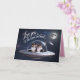 A dog Valentine's Day card featuring a Sheltie couple in a flying saucer going to the moon.
