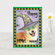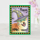 Mande saudações de Halloween com este cartão de Shiba Inu fofo vestindo uma máscara verde e um chapéu de bruxa decorado com uma aranha de bobo. Excelente para crianças de todas as idades que amam Shibas e Halloween. Tenha uma boa HOWL-oggy!
