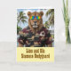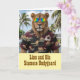 Um leão vestindo uma camisa havaiana e óculos de sol tem um gatinho siamês no bolso.