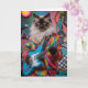 Um gato siamês em jardim psíquico está tocando violão elétrico.