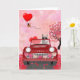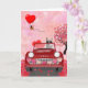 Cartão Siberian Husky Dirigindo Carro com Corações do Dia