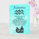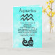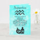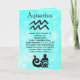 Cartão em branco do signo astrológico Aquário em azul verde Horóscopo Zodíaco Símbolo datas e características. Você pode adicionar Feliz Aniversário ou qualquer outra mensagem pessoal que desejar.