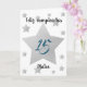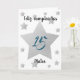 Cartão Feliz Cumpleaños personalizado que apresenta estrelas espalhadas pela frente. Você pode personalizar facilmente a grande estrela prateada com sua idade e seu nome embaixo da estrela. A mensagem da dentro também pode ser facilmente personalizada se você quiser. A parte de trás do cartão de aniversário espanhol tem o ano e Feliz Cumpleaños.
