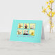 Este cartão bonito contém seis animais de pelúcia amigáveis. Girafa, Urso Pequeno, Coelho, Ursinho, Panda e Ducky... e diz: "Sim, sim! Um bebê está a caminho!" Dentro, "Parabéns, pai a ser! Você será um pai excelente."