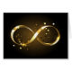 Símbolo infinito de joias Dourado com estrelas douradas sobre fundo preto. Design com estrela dourada.