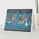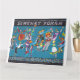 This design shows children dancing around people holding Torah scrolls to celebrate the holiday of Simchat Torah. The holiday celebrates the end of an annual reading of the Torah, the Jewish Bible. A boy and girl each hold a Torah scroll. Boys and girls dance joyously around them. Some hold flags, a tradition on the holiday.