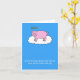 Um desenho animado de um porco de estimação com um halo acima da cabeça, tal como se encontra numa nuvem. As palavras "Desculpe ouvir sobre a perda do seu querido porco de estimação" acompanham a imagem.
