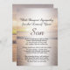 Um belo e reconfortante cartão de compaixão memorial com um poema concebido para ajudar a curar um coração de luto. Personalize com sua própria mensagem, se quiser. Você pode personalizar facilmente o poema, a pessoa que você está honrando, o título e até a imagem de fundo.