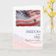 "A liberdade nunca é livre" é uma peça belamente patriótica. Este cartão de compaixão é pela perda de soldado ou policial. Apresenta a bandeira americana com uma silhueta de cavalo e, claro, em vermelho, branco e azul.