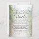Um belo e reconfortante cartão de compaixão memorial com um poema concebido para ajudar a curar um coração de luto. Personalize com sua própria mensagem, se quiser. Você pode personalizar facilmente o poema, a pessoa que você está honrando, o título e até a imagem de fundo.