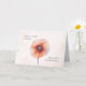Diga aos seus amigos ou familiares que estão pensando neles no aniversário da perda de um ente querido. Esta placa de compaixão dobrada de 7" x 5" tinha uma papoila laranja de cor d'água solteiro na frente com a mensagem, "Onde uma bela alma esteve, há um rastro de belas memórias." O dentro tem espaços reservados para uma mensagem, fechamento e nomes opcionais. Deixe qualquer um ou todos esses vazios se preferir escrever manualmente uma mensagem ou assinatura pessoal.