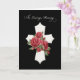 Este gracioso cartão de compaixão religiosa oferece uma forma significativa de expressar condolências pela perda de um ente querido. Com uma cruz branca adornada com rosas vermelhas, simbolizando a ressurreição e a vida eterna, a design é colocada contra um fundo negro sereno. A frente lê, "In Loving Memory", e a dentro oferece uma mensagem reconfortante de paz, fé e consolo. Com o seu simbolismo simples, mas profundo, este cartão proporciona uma expressão refletida de simpatia, oferecendo apoio àqueles que lutam e refletindo sobre a promessa de amor e vida eterna.