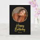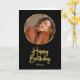 Cartão Simple Black and Gold Script Circle Photo Birthday