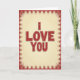 This card features the words “I LOVE YOU” in large, red letters centered on the front, set on two lines. The lettering has a worn, speckled look with tiny white flecks, like an older printed sign. Around the message is a repeating deep-red border filled with small connected shapes and little dots that feel like a folk-style pattern. The background is a soft creamy yellow that fades slightly toward the edges, with a few faint splatters that add to the aged feel. It’s a simple message, but the older look makes it feel like something you’ve held onto for a long time. Giving it can feel like saying “I mean this,” whether it’s for a partner or someone you care about deeply 🥰. Share it to pass along a little love and closeness on Valentine’s Day ❤️.