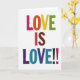 This card features the message “LOVE IS LOVE!!” centered on a white background, stacked in three lines from top to bottom. The letters look slightly uneven, like they were cut and placed by hand, which makes the message feel human and real. The top line, “LOVE,” uses fuchsia, orange, yellow, and green letters that feel bright and happy. In the middle, “IS” is done in red and deep maroon, adding a steady, warm note. The bottom line, “LOVE!!” mixes purple, teal, indigo, and cyan, followed by two exclamation marks in black and magenta. The text is in big, simple printed letters, and the strong contrast against the white space makes it easy to read right away. It’s a meaningful card to give because it supports love in all forms and says “I’m with you” in a clear, caring way 🥰❤️.