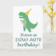 Ilustração de dinossauro com chapéu de aniversário. Altere o texto usando o formulário modelo. O recurso personalizar pode ser usado para alterar a fonte e o layout deste cartão!