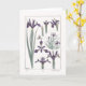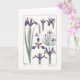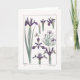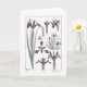 Um cartão de cumprimentos em branco com uma ilustração botânica de flores de íris roxas pelo artista francês Maurice Pillard Verneuil. Esta litografia foi originalmente criada usando o método pochoir de desenhos coloridos à mão, que foi digitalmente aprimorado e modificado.