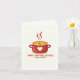 Este cartão de saudação 'ficar bem' apresenta uma ilustração encantadora ao estilo de desenho animado de um pote vermelho vivo cheio de sopa amarela cozida, manchada de ervas verdes vibrantes. O pote tem duas alças bonitinhas em ambos os lados e emite linhas de vapor vermelhas ondulantes a partir do topo, acrescentando um toque confortável e confortável ao design. Um coração branco na frente do pote adiciona um elemento doce e carinhoso ao olhar geral. O texto "espero que se sinta melhor, Soup-er Soon" está escrito em uma fonte cor cor de laranja quente abaixo do pote, destacando-se contra o fundo branco comum. 🥣 💚 A combinação de cores alegres, imagens lúdicas e mensagens pensativas cria um cartão que certamente trará um sorriso ao rosto de alguém enquanto se recupera. Este design encantador transmite sentimentos de calor, conforto e desejos, fazer a maneira perfeita de mostrar a alguém que você se importa durante um tempo desafiador. Seja exibido em uma mesa de cama ou pendurado em uma sala de hospital, este cartão de saudação 'ficar bem' é um gesto atencioso e animador que certamente iluminará o dia do receptor. 🧡 🌟