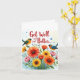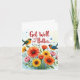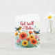 Esta carta de boas-vindas apresenta uma bela pintura aquosa de um buquê colorido de flores em tons de vermelho, laranja, amarelo e rosa, com caules e folhas verdes e peludas, e delicadas flores azuis entremeadas por toda parte. Os pop vibrantes do buquê contra um fundo azul claro e macio, criando uma sensação suave e alegre. Duas aves lacrimogêneas estão poleiradas nos caules, uma de cada lado, acrescentando um toque caprichoso ao design geral. A mensagem sincera "Sentir-se melhor..." é escrita elegantemente em caracteres cursivos vermelhos no topo da imagem, centrada e esticada na largura da página em um fundo branco nítido. 🌺 🕊️ Enviar este cartão a um ente querido é certo que irá iluminar o seu dia e levantar os espíritos com o seu design colorido e encantador. A combinação do arranjo floral, o cenário azul calmante e o sentimento doce expresso na letra elegante faz deste cartão uma forma perfeita de transmitir os vossos desejos e apoio durante o seu tempo de cura. Quer seja um amigo, membro da família, ou colega, receber este cartão atencioso é obrigado a trazer um sorriso à sua face e deixá-los saber que estão a pensar neles. Vai logo! 🌼 💙