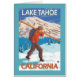 Cartão Skier Carregando Snow Skis - Lago Tahoe, Califórni