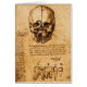 Skull and teeth from the ancient anatomical studies of Leonardo da Vinci, pen and brown ink on paper with old aged antique parchment ,grunge effects.