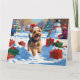 Cartão Skye Terrier correndo em neve com chapéu de Natal