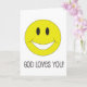 This inspirational, happy and Christian greeting card features a smile face with "God Loves You!" text.