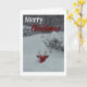 Neve fresca em um hidrante vermelho e amarelo faz um gnomo engraçado da neve. Personalize o dentro de texto do cartão para a sua saudação de Natal favorita.