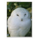 Coruja-de-neve, coruja-grande da típica família das corujas Strigidae, sentada entre pedras