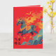 To the left of the running horse are bold black calligraphic characters, 飞黄腾达. Mythic, fiery, and elegant.