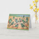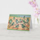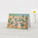 The illustration on this greeting card shows a group of frogs playing soccer.
