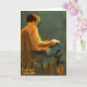 Um estudo de figuras completamente vestidas. Uma mulher de cabelo curto se senta confortavelmente sobre uma cadeira de madeira enquanto lê um livro. O sol brilha em seu rosto enquanto ela é virada na maior parte do tempo.